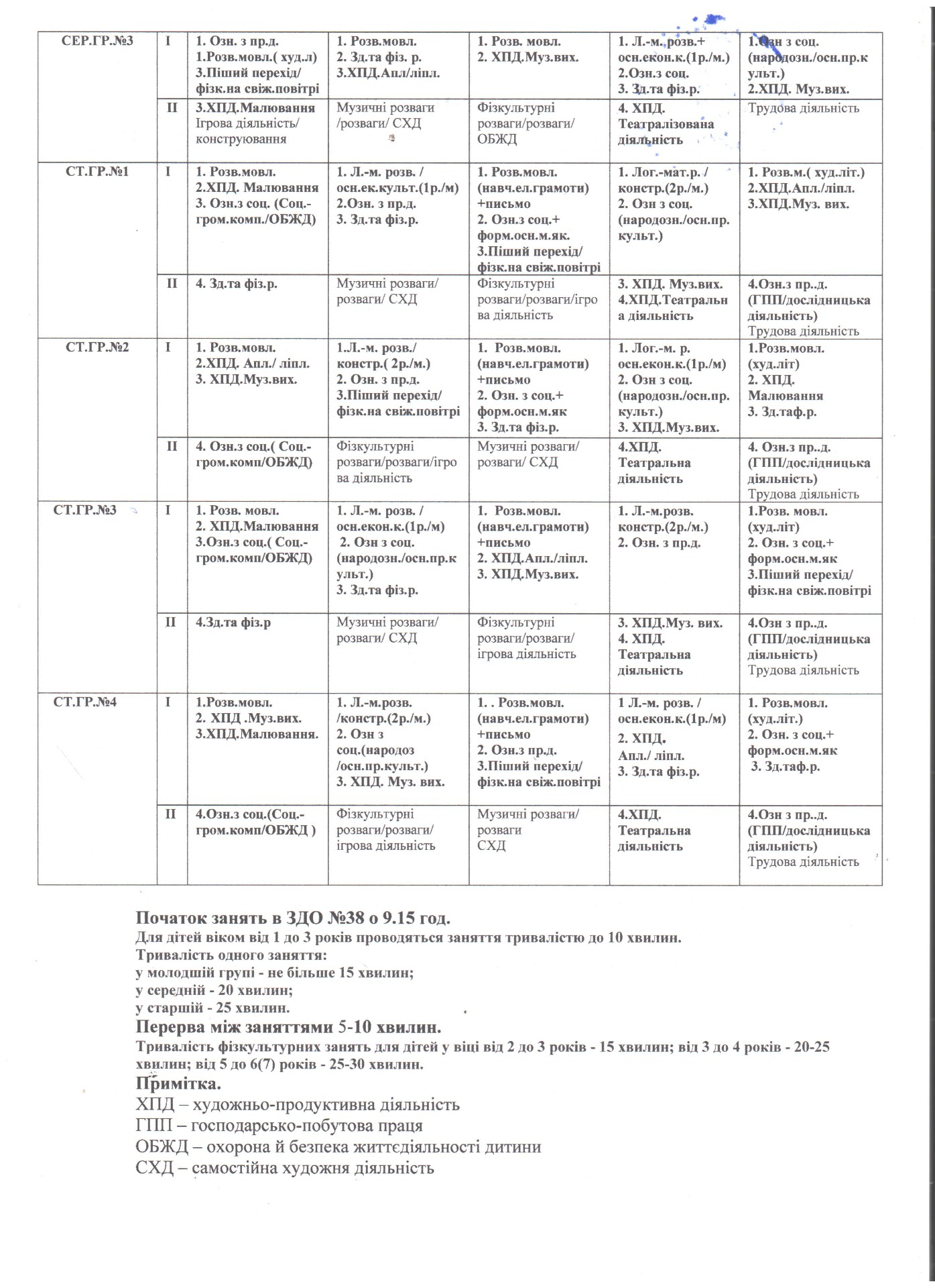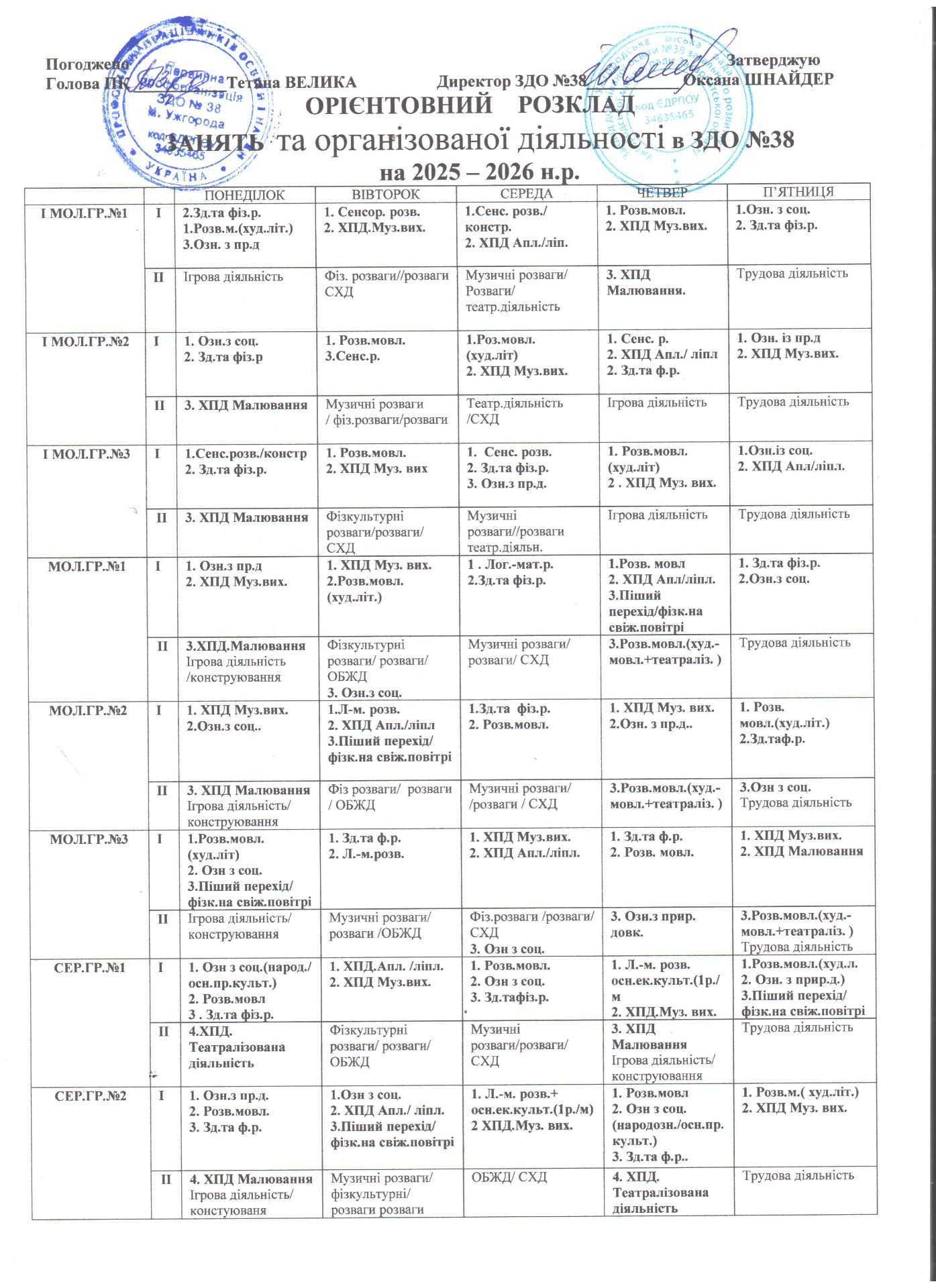 ОРІЄНТОВНИЙ РОЗКЛАД ЗАНЯТЬ НА